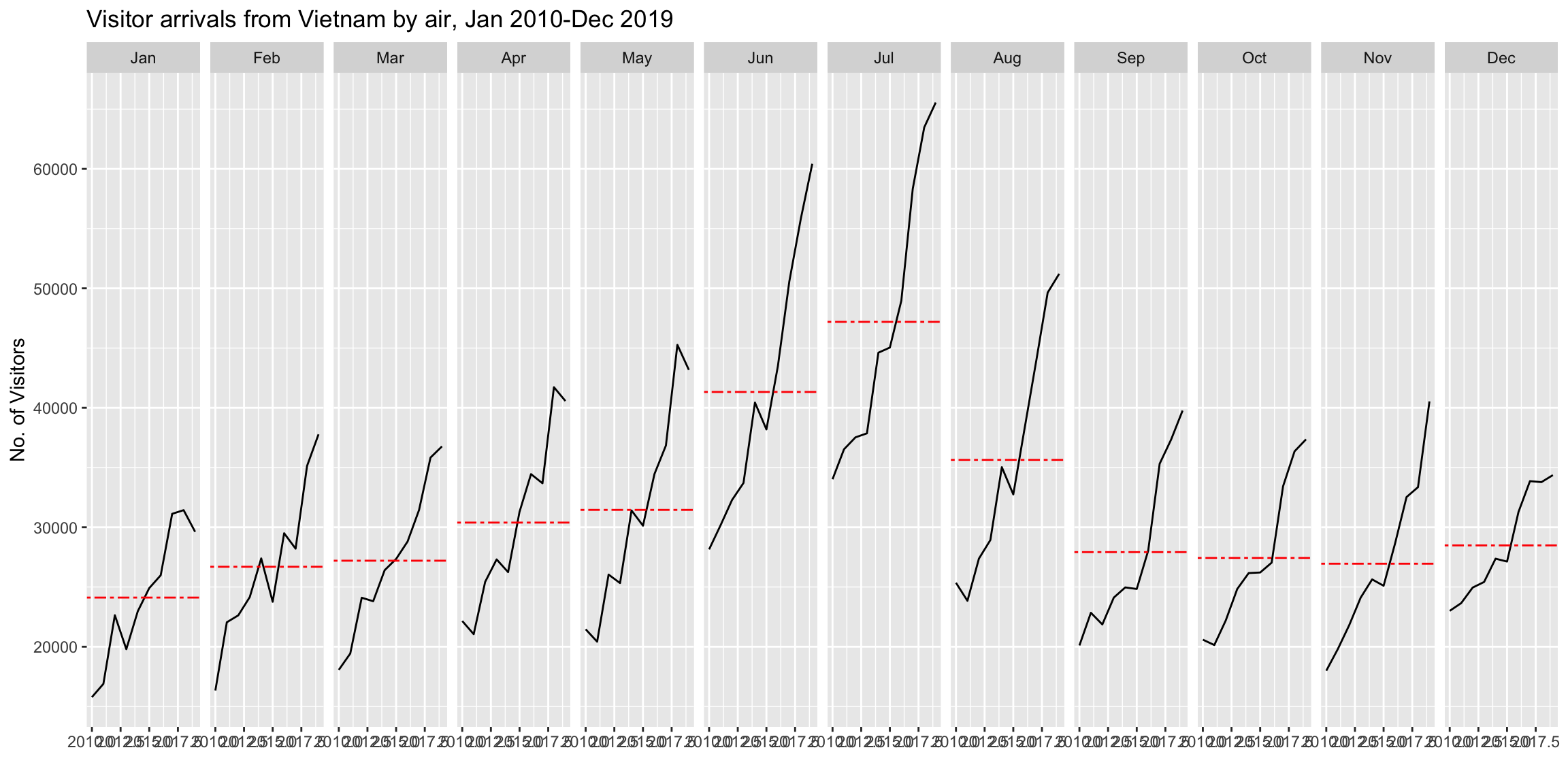 title = "Visitor arrivals from Vietnam by air, Jan 2010-Dec 2019") +