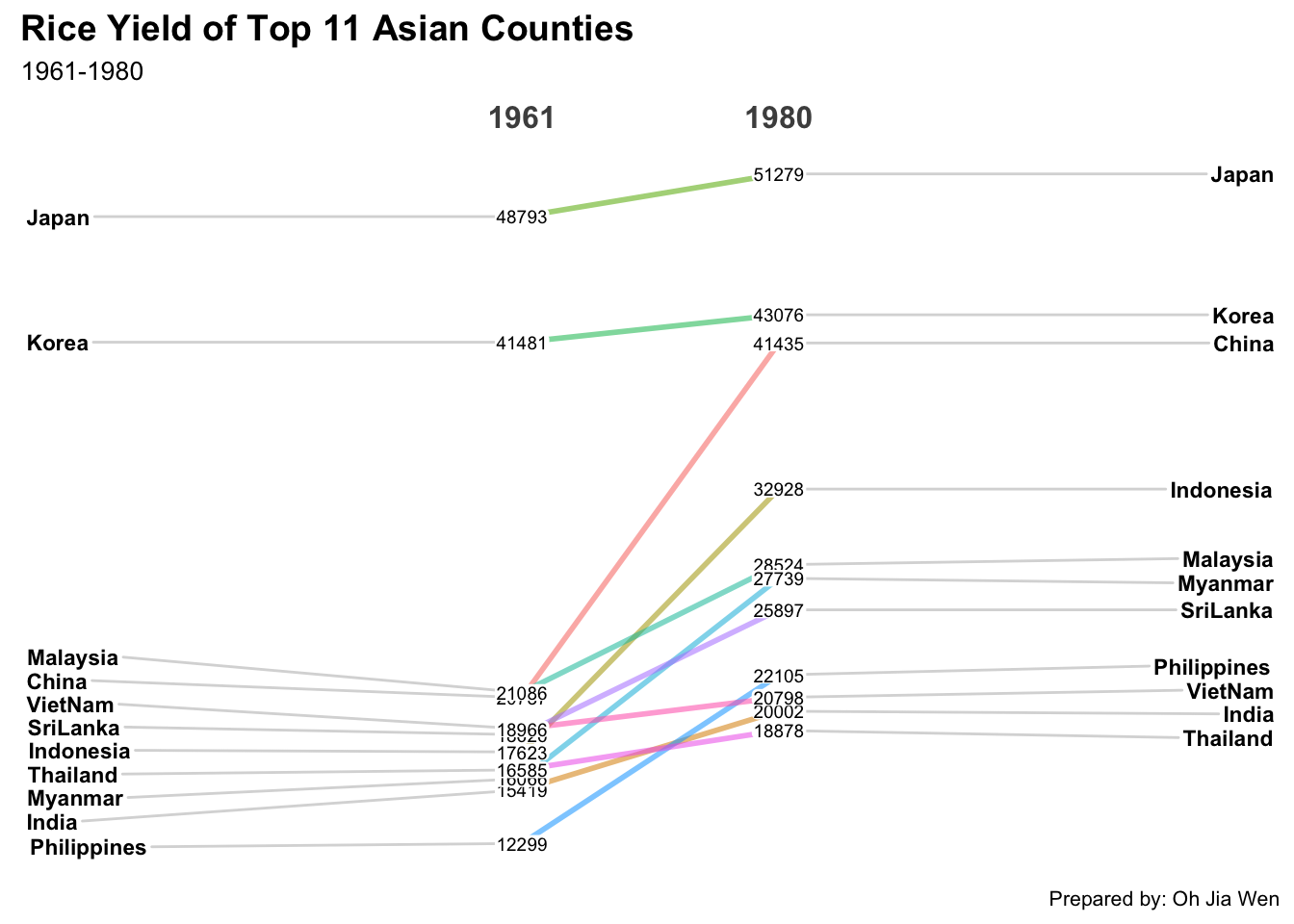 Title = "Rice Yield of Top 11 Asian Counties",
